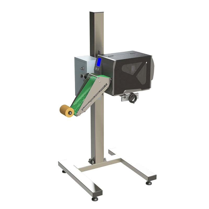 Модуль представляет конструкцию с необходимыми валами, ремешками, шаговым двигателем и двумя вентиляторами. Этикетка печатается и перемещается на модуль переноса этикетки, скорость движения ремней и печати синхронна. Вентиляторы создают вакуум и не позволяют этикетке упасть. Далее ремни перемещают этикетку на продукт.